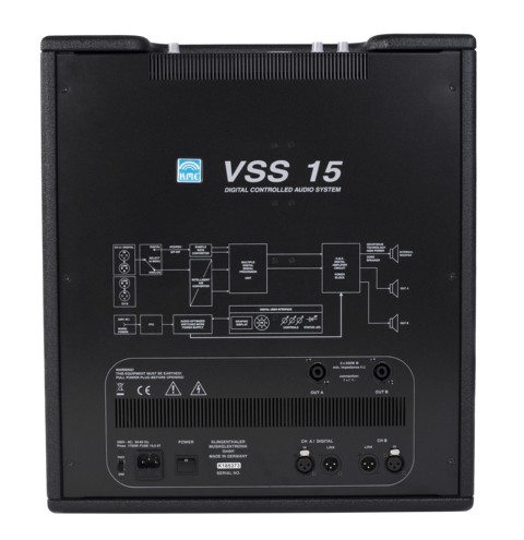 - Einstellbare Gain, digitale Crossover (80 Hz – 160 Hz), Subsonic- Filter, parametrische EQ`s, Peak / RMS- Limiter, Delays (0 – 1000 ms), VSS 18: Phase (180°)