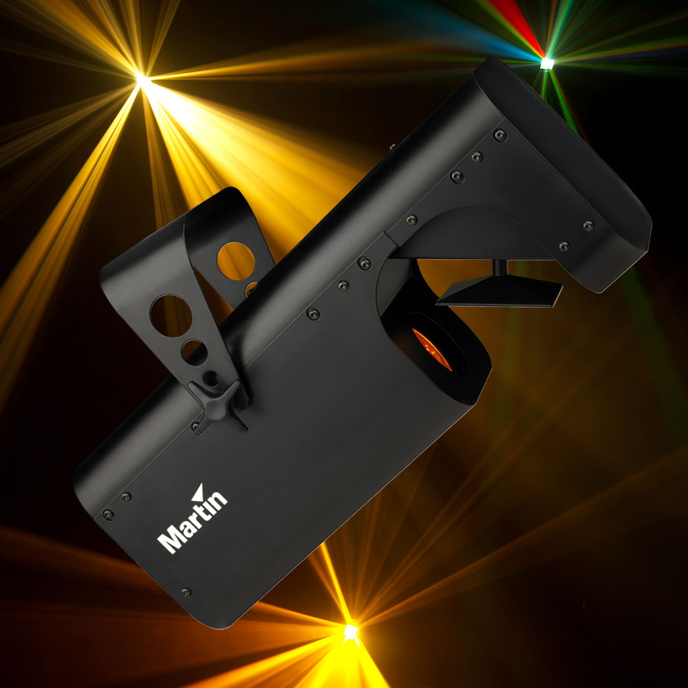 Schnell und wild erzeugt der T-Rex mit seinem Vierfachspiegel eine vernichtende Effekt-Salve: Rasiermesserscharfe Lichtstrahlen durchschneiden den Raum und wechseln dabei ständig Form und Muster im Takt der Musik.