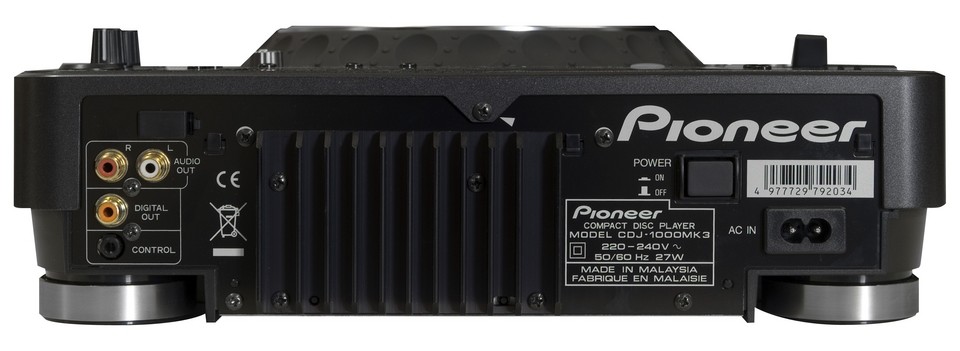 Der CDJ-1000MK3 über vergoldete RCA Steckerverbindungen und einen Digitalausgang zum Anschluss an digitale Mischpulte wie der DJM-800 oder der DJM-1000 um Klangqualität auf High End Niveau sicher zu stellen.